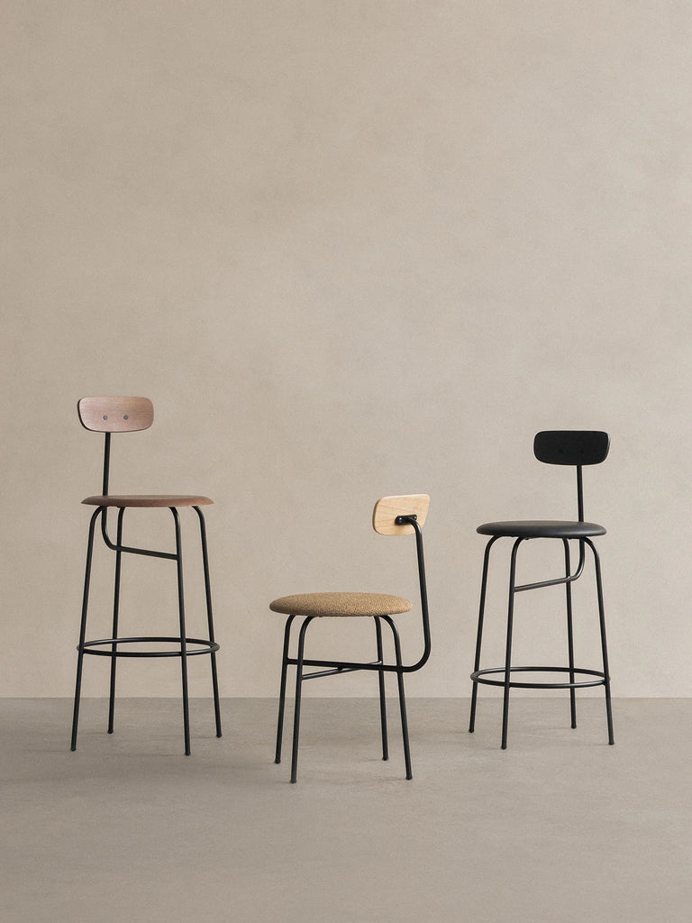 With a silhouette that is both sleek and instantly recognisable, the Afteroom Dining Chair is offered with an upholstered backrest and a wood veneer seat, each delivering comfort when seated for longer periods. In wood veneer, the chair exudes a sense of authenticity and warmth, while upholstery allows for a comfortable, customisable design to suit any style and space. Seamlessly integrating into spaces with its sleek profile, offering a harmonious and coordinated design it is not just a functional piece but also a standout element in any interior space.