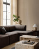 With its corner, open section and chaise longue modules, this modern sofa configuration features a down-filled seat and curved back- and armrests for added support when sitting.