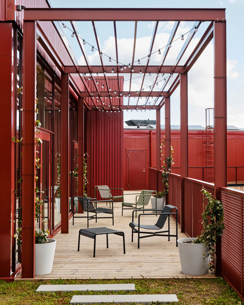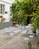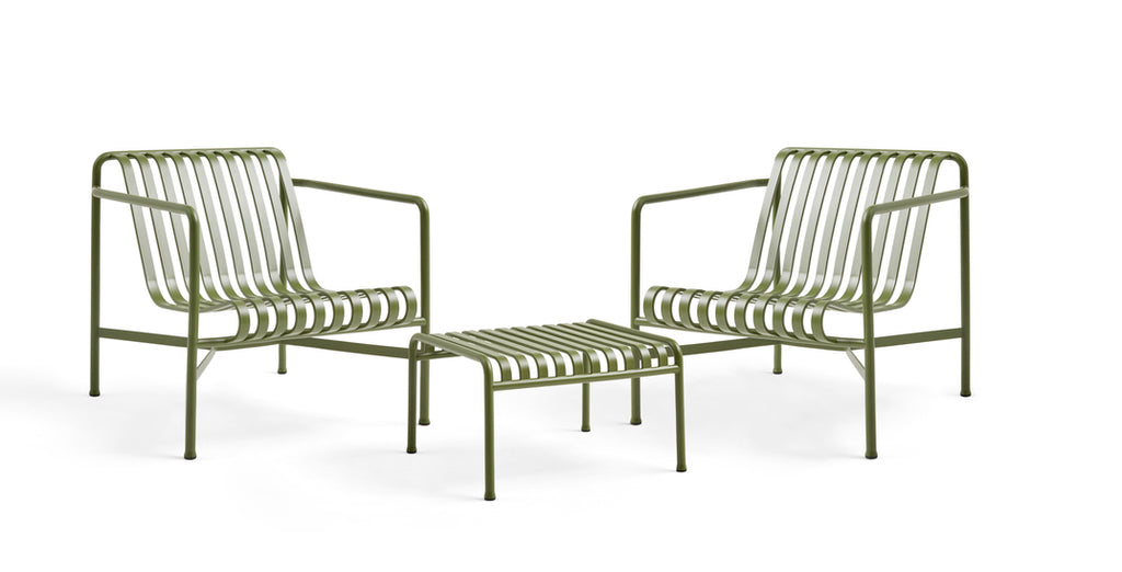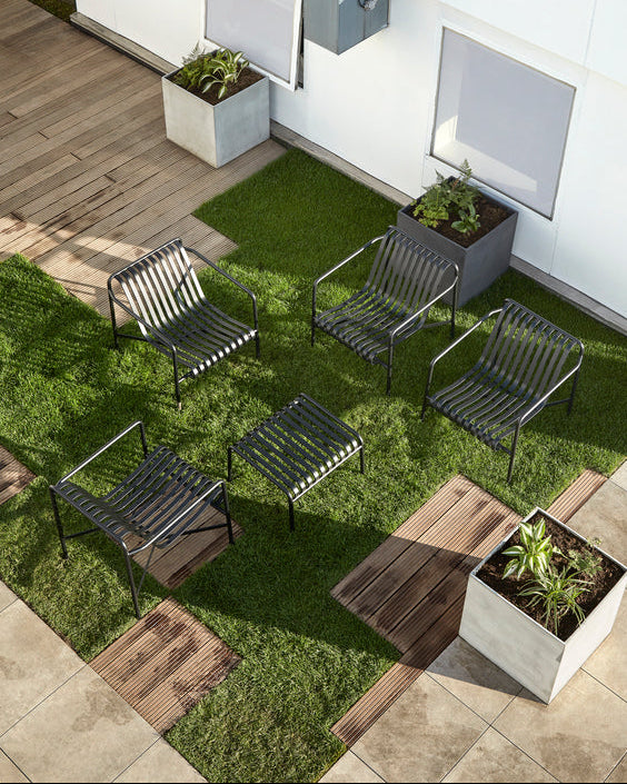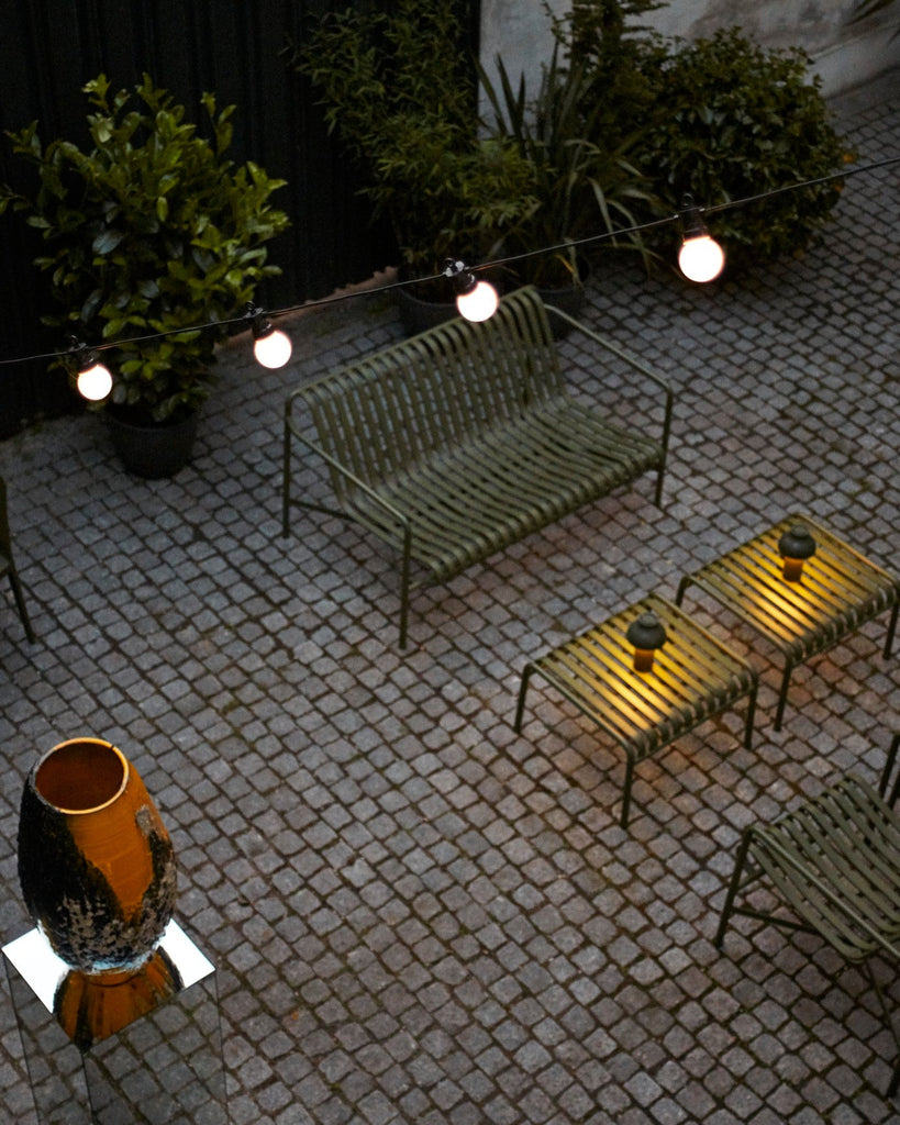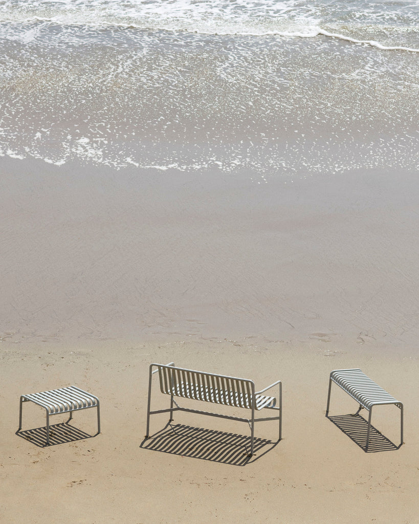Palissade is a collection of outdoor furniture designed by Ronan and Erwan Bouroullec for HAY. The collection was designed to fit a wide variety of environments: cafés, restaurants, gardens, terraces and balconies. The construction allows a wide range of typologies with a common formal language. From stools and benches to chairs and tables, lounge chairs and sofas – the collection comprises 13 different elements, united not only by their graphical image but also by their common characteristics: they are strong without being bulky, elegant without being fragile.