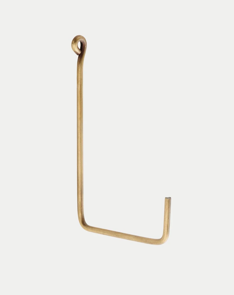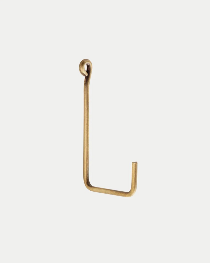 Simple, hand-made wall hook in warm, antiqued brass. Irregularities in finish will occur. Useful in the kitchen, bathroom, closets, and more. Screw is included.