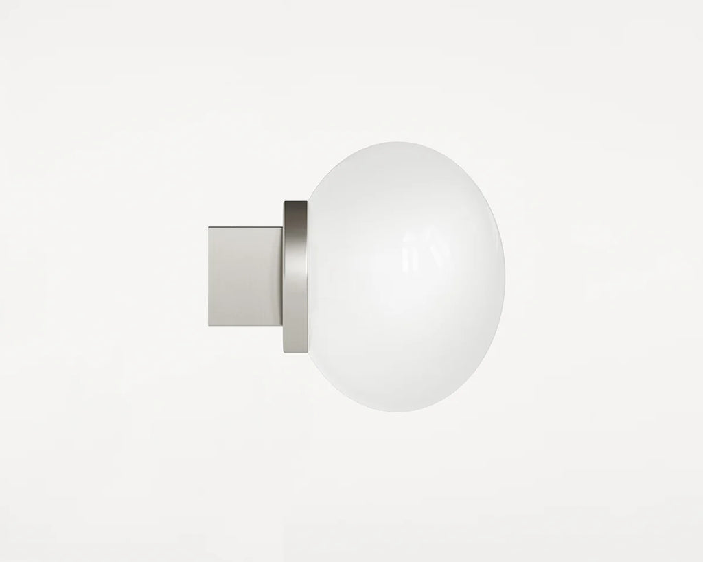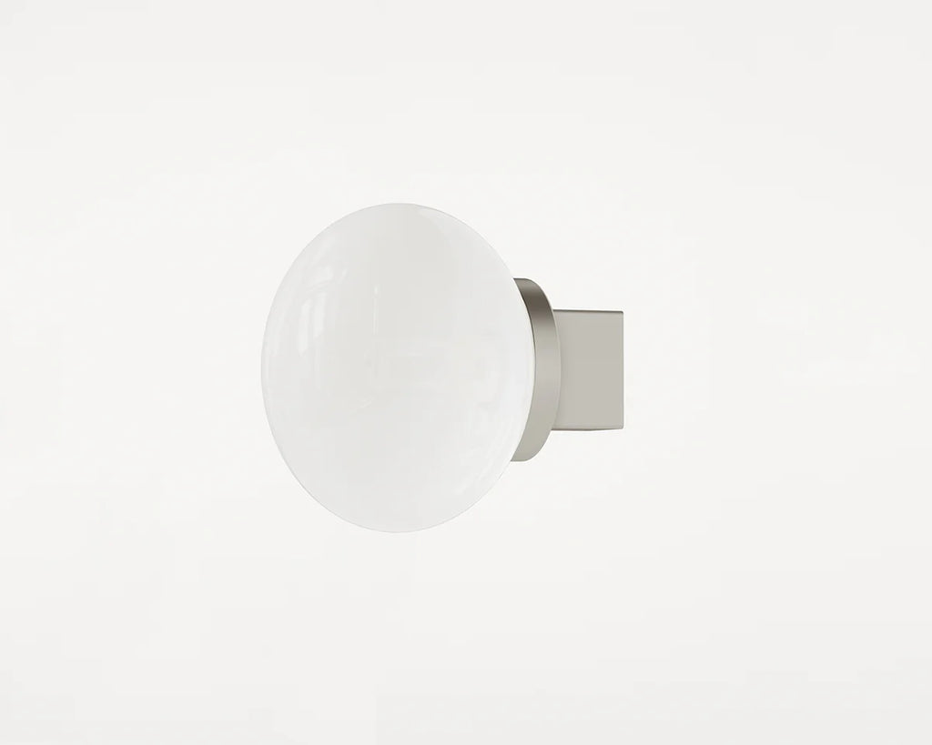 The Ovoid Sconce is a minimal lighting fixture featuring a sleek stainless steel base and a unique hand-blown glass sphere. Perfect for mounting on walls, hallways or corridors where subtle light is needed.