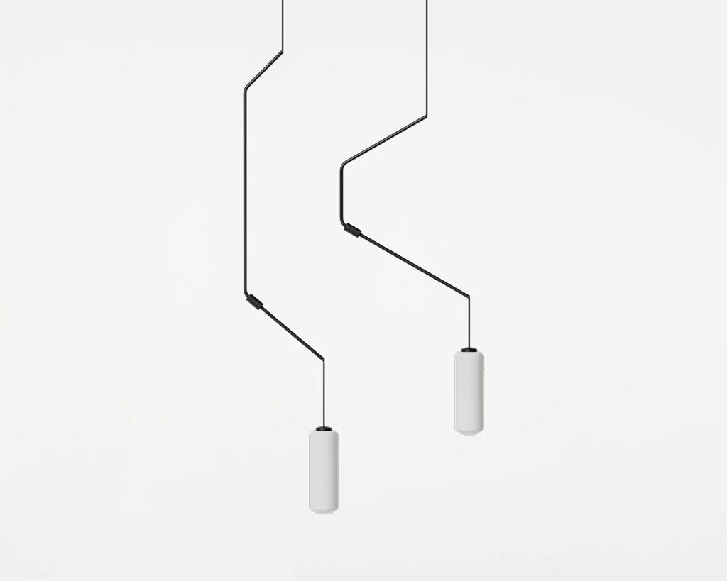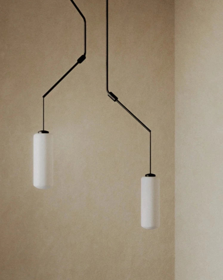 The Ventus pendant lamps are a collaboration between Frama and Danish designers Included Middle, in which the traditional pendant cord receives an architectural bend, creating new forms in the environment it is placed.  The pendant is capped off by an opal glass light shade which exudes the warm glow of an integrated LED bulb within.