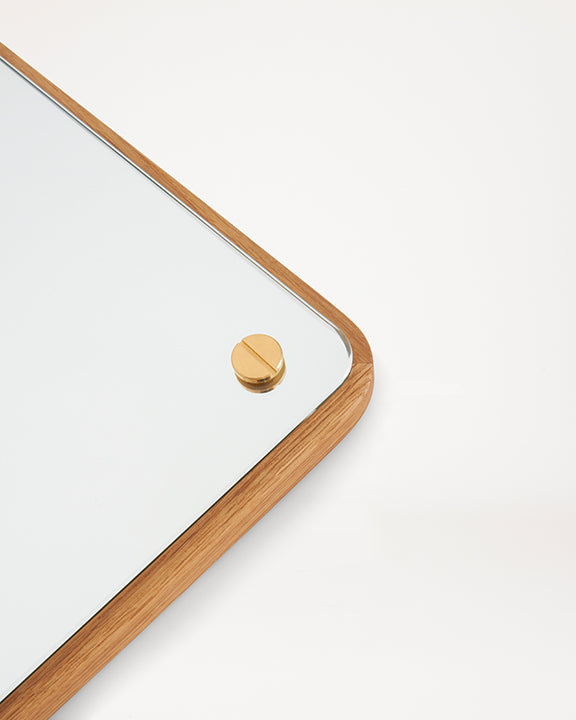 The rectangle mirror is an updated take on a classic standard. With carefully articulated sizing to fit a number of uses, the classic mirror is mounted to a solid oak back. Visible screws that celebrate the analog approach to construction are material simplicity. The RM-1 Mirrors can be hung both vertically, and horizontally.