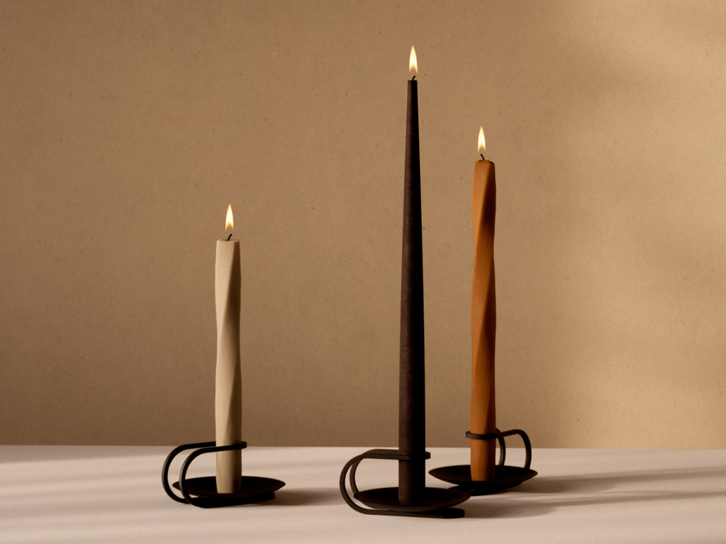 An effortless way to display candles, the Clip Table Candleholder is understated yet intriguing. Reworking medieval candleholders and sconces while exploring an equilibrium of form, the slender frame balances a practical drip tray for an ethereal expression.