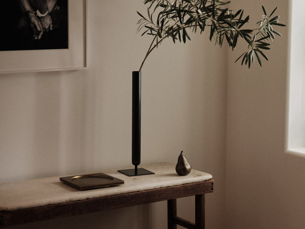 Simple. Sophisticated. Sculptural. The Stance Vase is inspired by traditional display stands to provide support for branches or long-stemmed flowers. The bronzed brass vase patinates beautifully over time and the understated design lends itself to any setting. Available in two sizes.