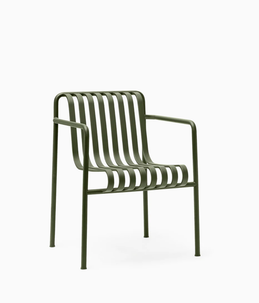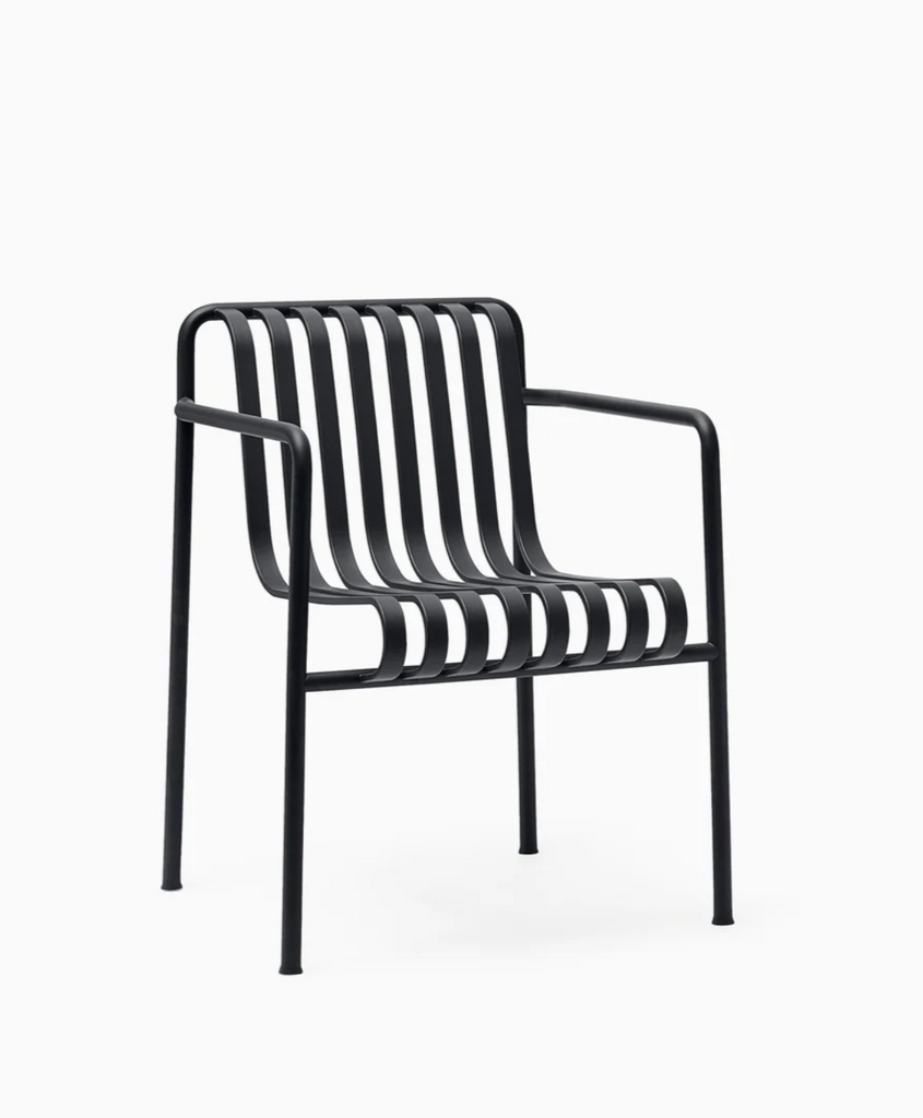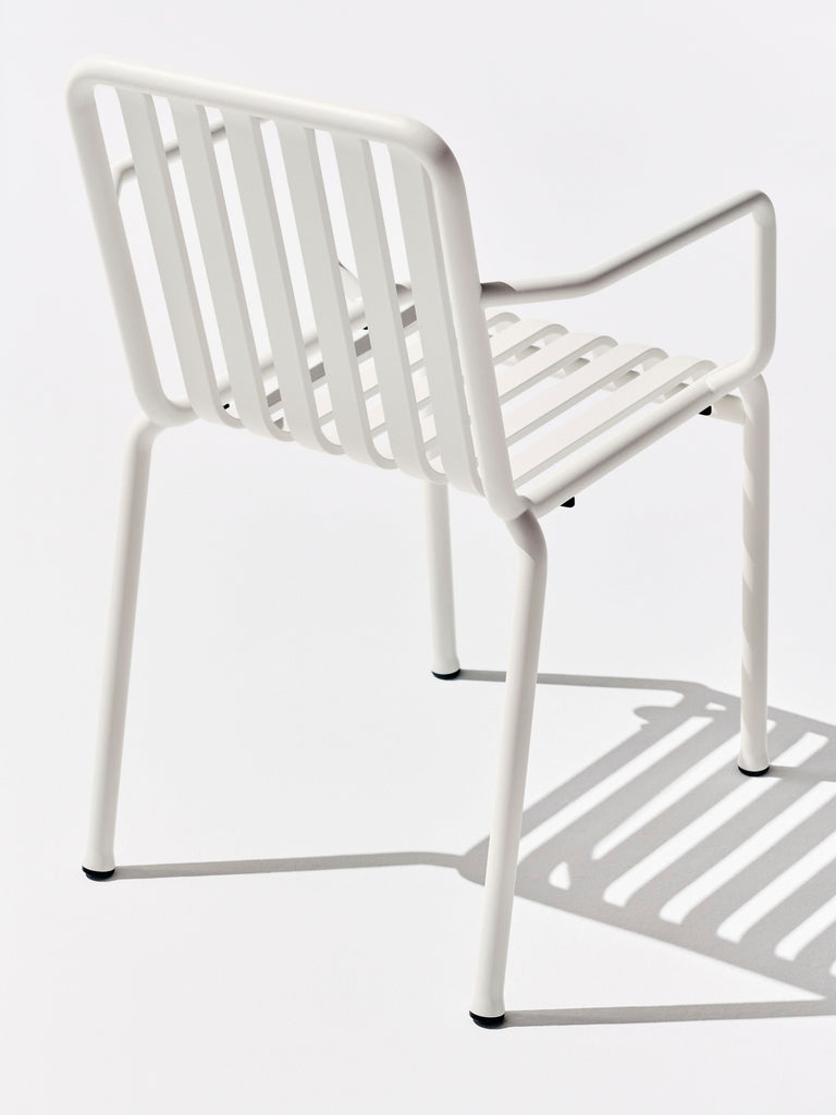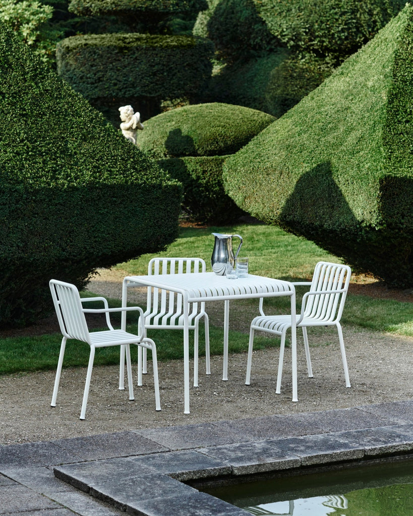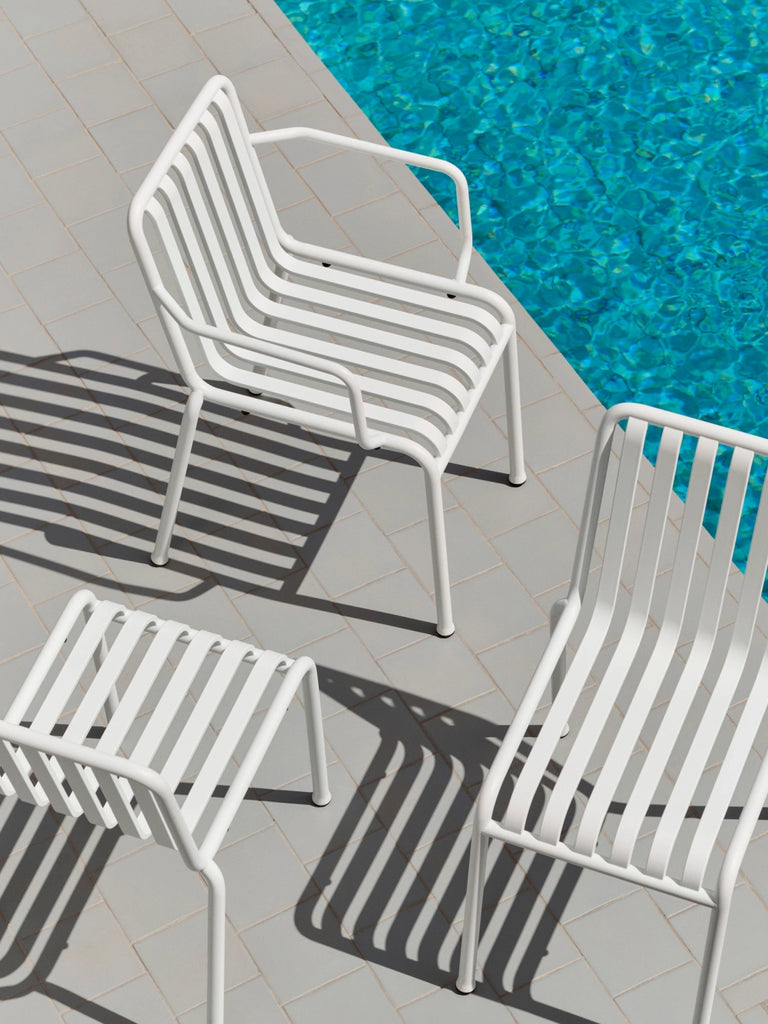Palissade is a collection of outdoor furniture designed by Ronan and Erwan Bouroullec for HAY. The collection was designed to fit a wide variety of environments: cafés, restaurants, gardens, terraces and balconies. The construction allows a wide range of typologies with a common formal language. From stools and benches to chairs and tables, lounge chairs and sofas – the collection comprises 13 different elements, united not only by their graphical image but also by their common characteristics: they are strong without being bulky, elegant without being fragile. Chair and Armchair are stackable up to 8 pcs.