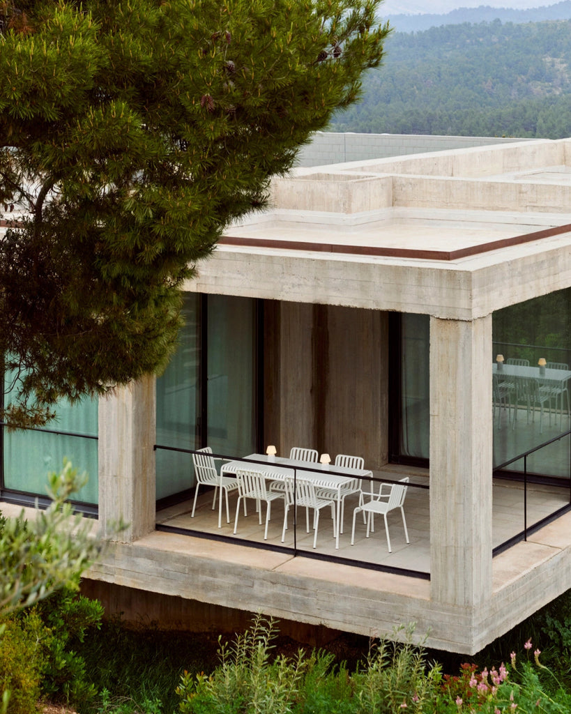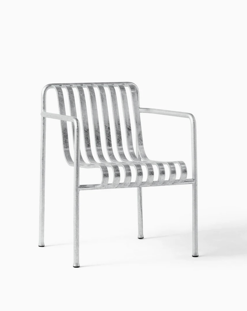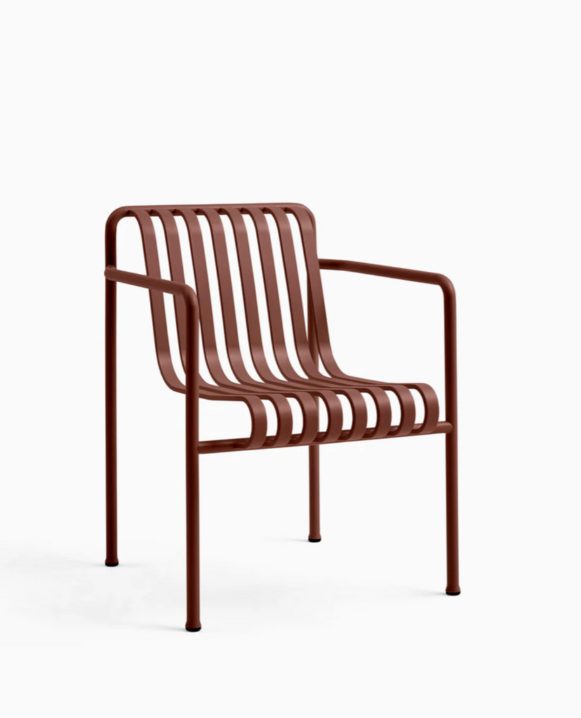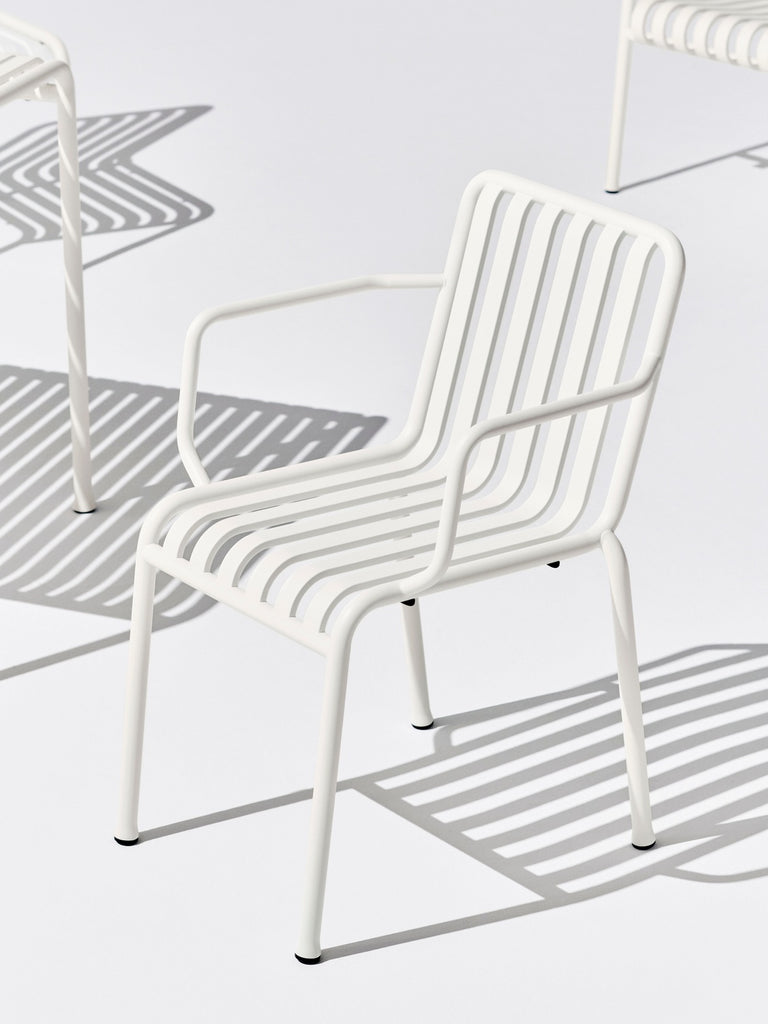 Palissade is a collection of outdoor furniture designed by Ronan and Erwan Bouroullec for HAY. The collection was designed to fit a wide variety of environments: cafés, restaurants, gardens, terraces and balconies. The construction allows a wide range of typologies with a common formal language. From stools and benches to chairs and tables, lounge chairs and sofas – the collection comprises 13 different elements, united not only by their graphical image but also by their common characteristics: they are strong without being bulky, elegant without being fragile. Chair and Armchair are stackable up to 8 pcs.