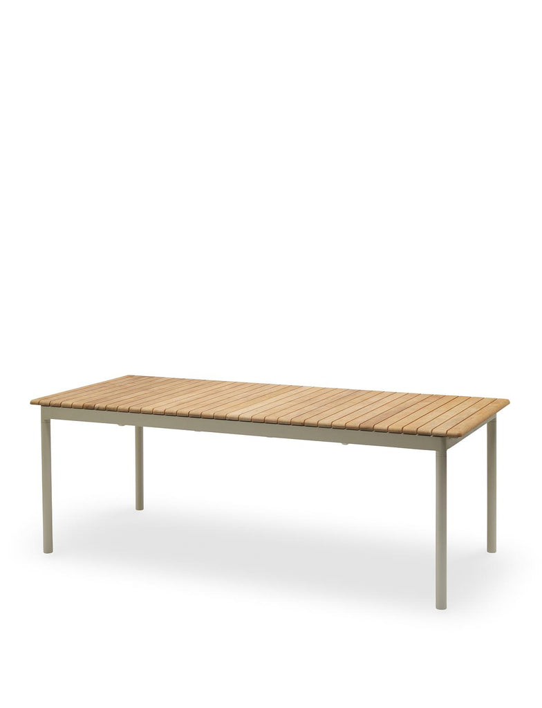 Pelagus Table is created for sociability and comfort. The teak tabletop has rounded edges where it meets the powder-coated aluminum. Comfortably seating 6 or 8 people, it can be extended for up to 4 more, with the addition of one or two extension plates (sold separately).