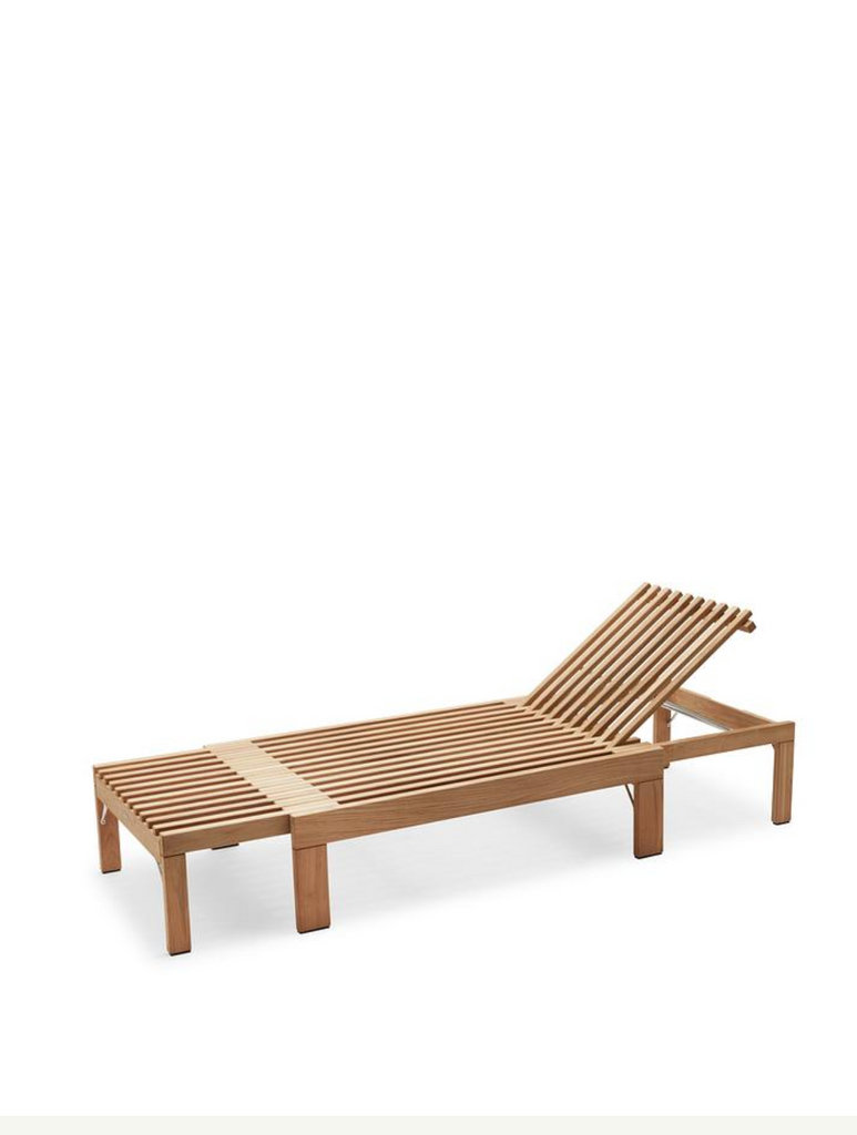 Riviera has it all. It is a sunbed, a bench, a coffee table and a guest bed. Designed in 1990, this versatile design has become an outdoor classic, appreciated for its flexibility and straightforward appearance. The slatted teak construction is adjustable in length and can easily be supplemented by a comfortable cushion.