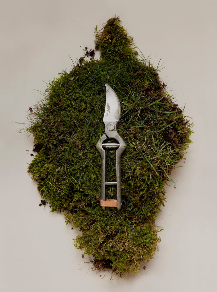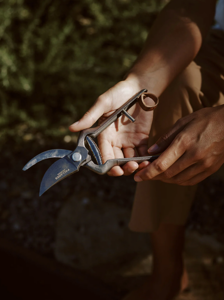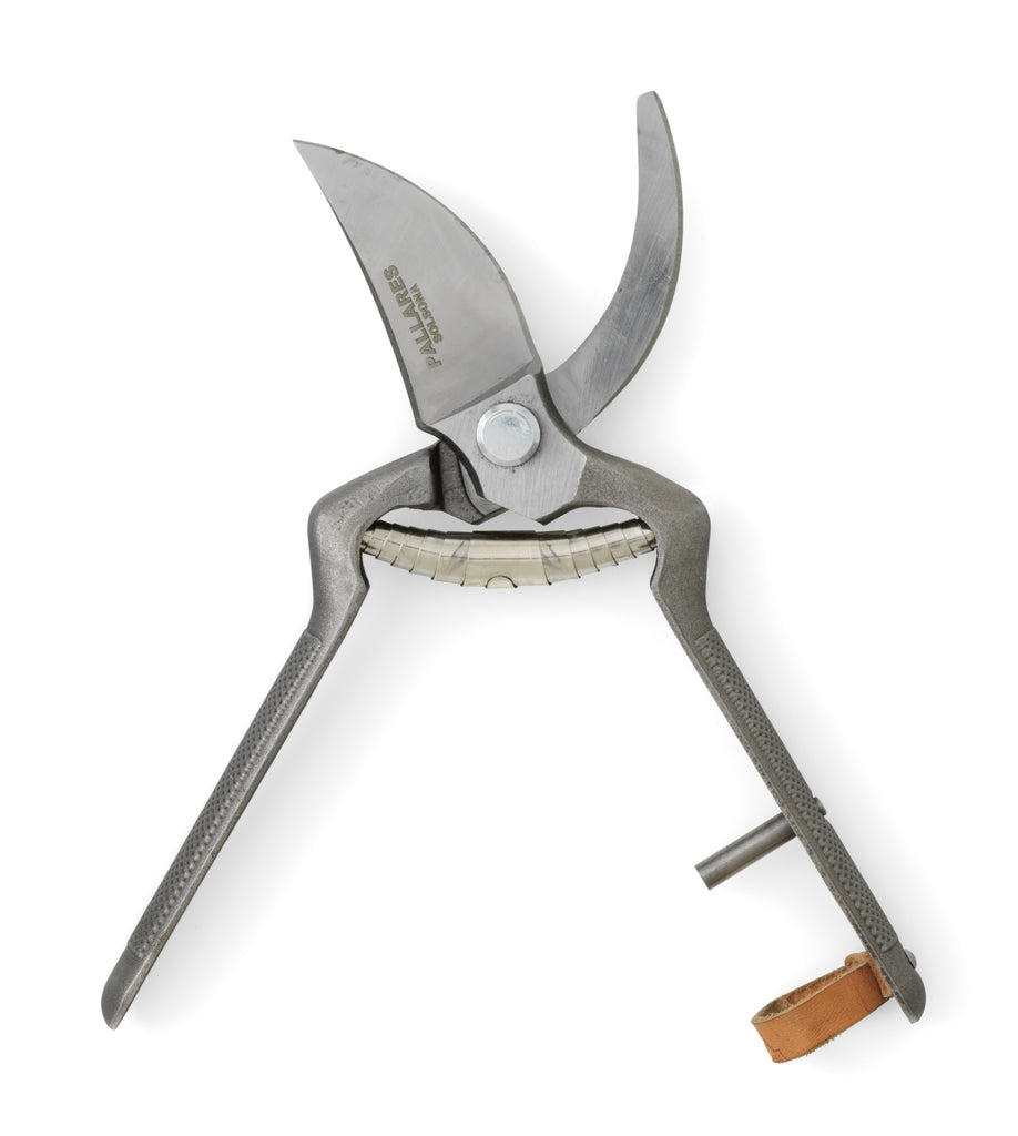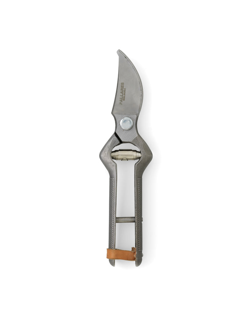 Intended for everyday gardening use to trim larger branches and stems, the pruner has an ergonomic grip and leather safety fastener. A handmade leather holder fitted with a belt loop ensures the safe storage of the tool when not in use. The natural leather will develop a rich patina over time. The Pruner and holder are packaged in a wooden crate.