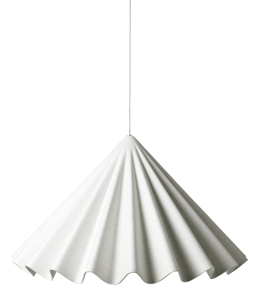 Materials: Socket: E27 | Cord: 300 cm, felt fabric, white | Canopy kit included, no plug | No bulb included