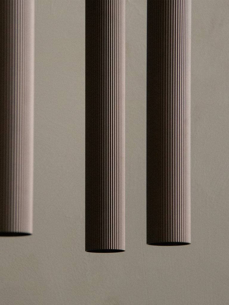 The Tubulaire Pendant is a visually captivating lighting solution in reeded aluminium which has been anodised to create a bronzed brass surface finish. Engineered for a range of settings, it delivers directional and focused light, enhancing visibility and functionality for task-oriented activities in various settings. Available in two sizes, the sleek and contemporary design adds a touch of sophistication to any space, elevating the overall ambience.