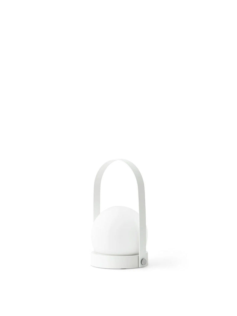 With a sleek, functional handle and a warm orb of light nestled gently in a basket-like base, the Carrie Portable Lamp is useful anywhere. Crafted in glass and metal – with a plastic base version available for outdoor use – Carrie is unique for its multiple uses and mutability: the cordless design comes with a concealed USB charger at its base for easy charging. The warm, ambient light is adjustable to three settings, and fully charged, it will stay on for at least ten hours on highest setting. Made with freedom and flexibility in mind, it comes in a range of beautiful colours.