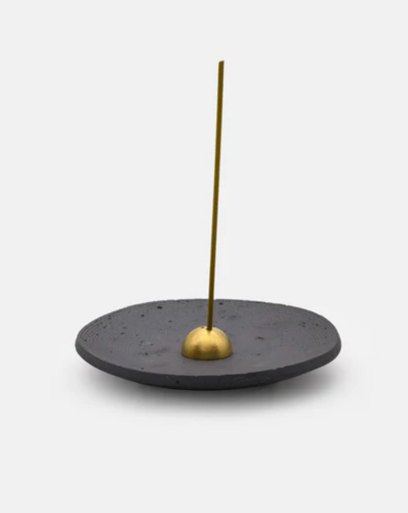These beautiful raw black stoneware dishes are hand-thrown on the wheel. They are so versatile; suitable for resting smudging herbs or burning incense, with the gold brass Dome Holder.