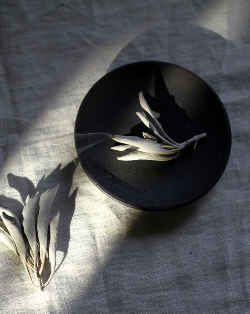 Raw Black Stoneware Smudging + Incense Dish | Ume