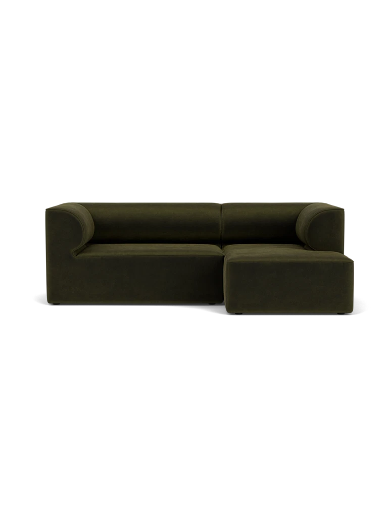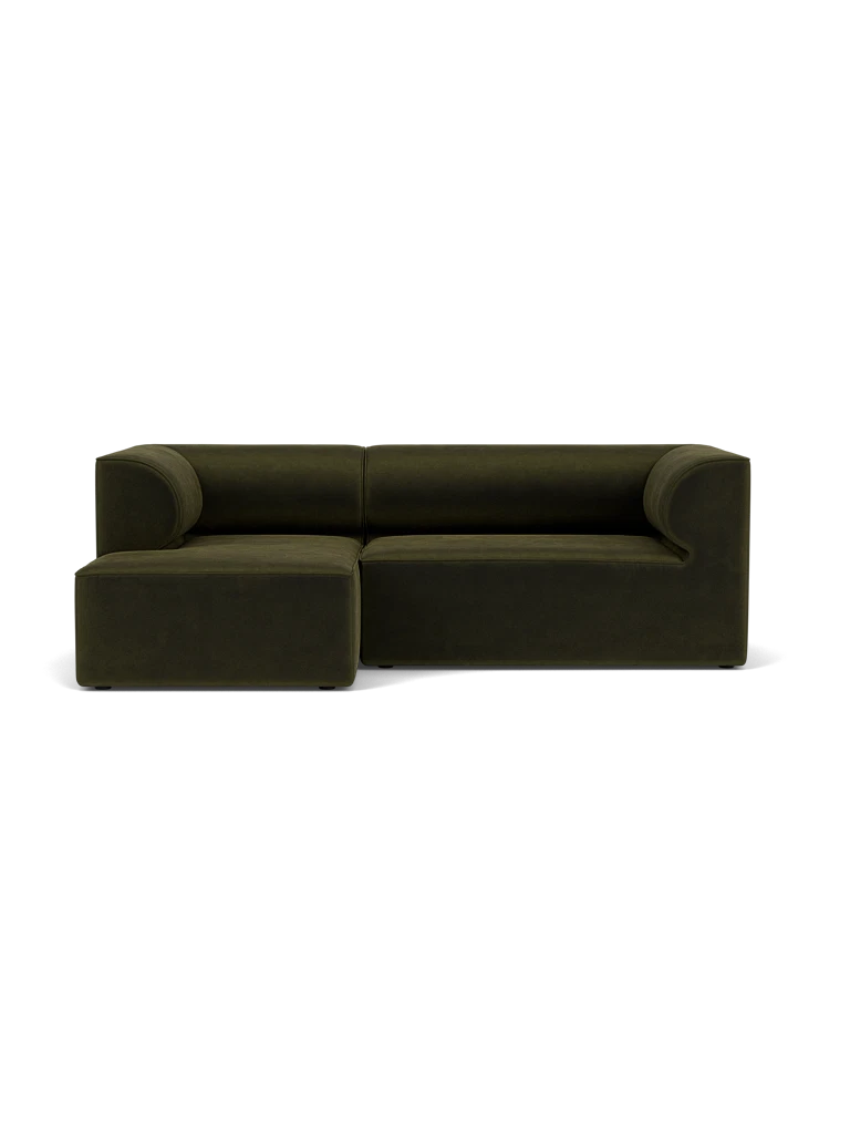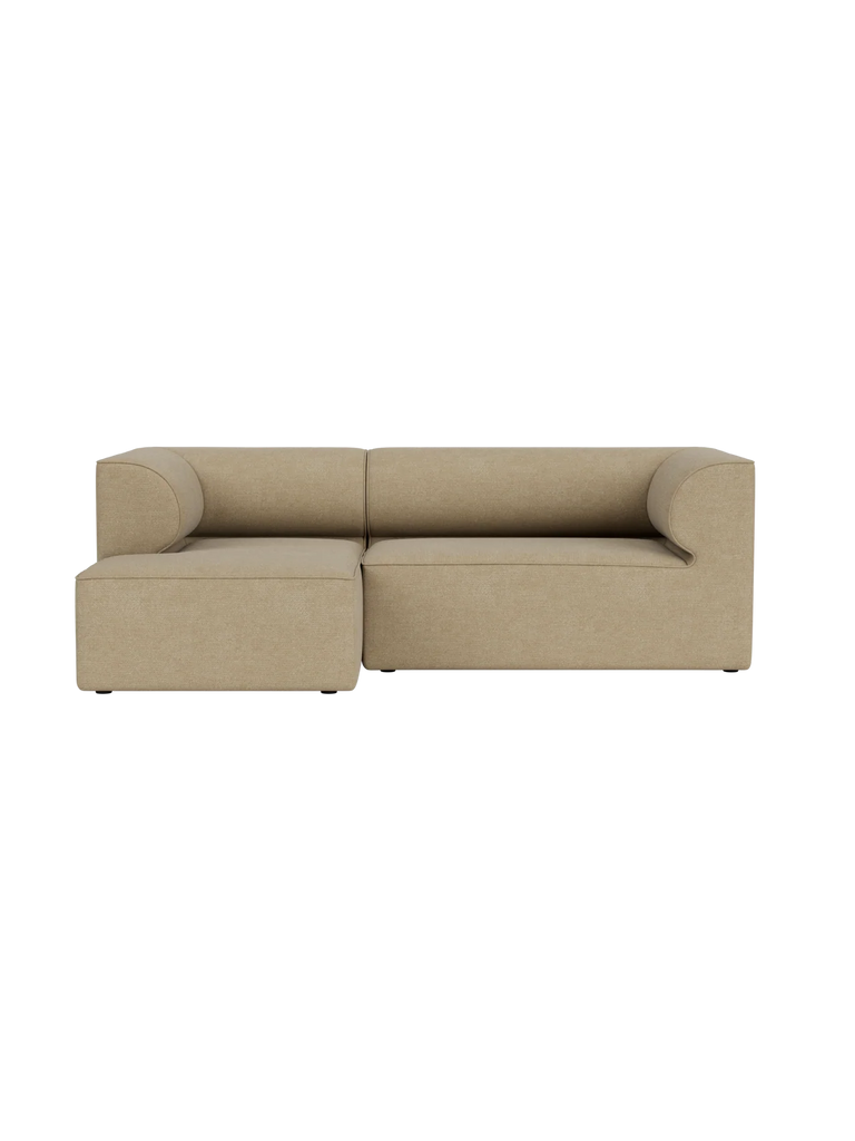Inspired by architecture Eave Modular Sofa takes its name from “eaves” – the lower edges of the roof that overhang a wall. The sofa’s distinctive detail is its internal “eaves” – curved upholstered armrests that lend the sofa its expressive character. A chaise longue and a closed end module combine to create a carefully balanced sofa that offers comfort and ease.