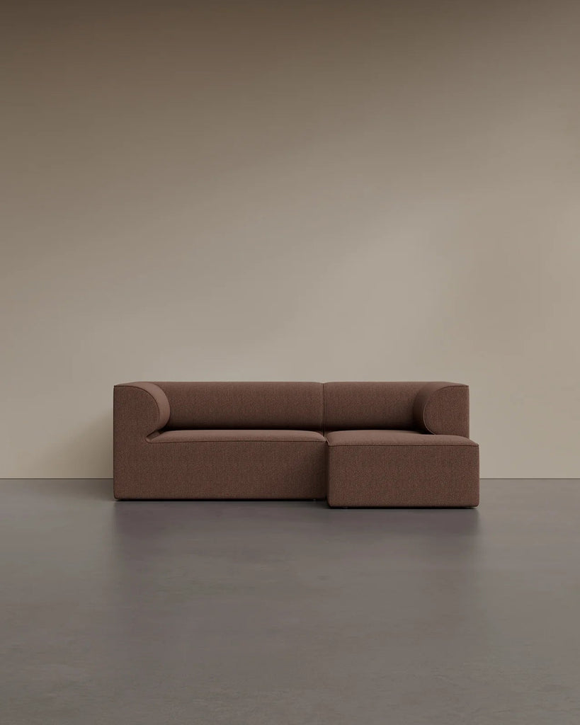 Inspired by architecture Eave Modular Sofa takes its name from “eaves” – the lower edges of the roof that overhang a wall. The sofa’s distinctive detail is its internal “eaves” – curved upholstered armrests that lend the sofa its expressive character. A chaise longue and a closed end module combine to create a carefully balanced sofa that offers comfort and ease.