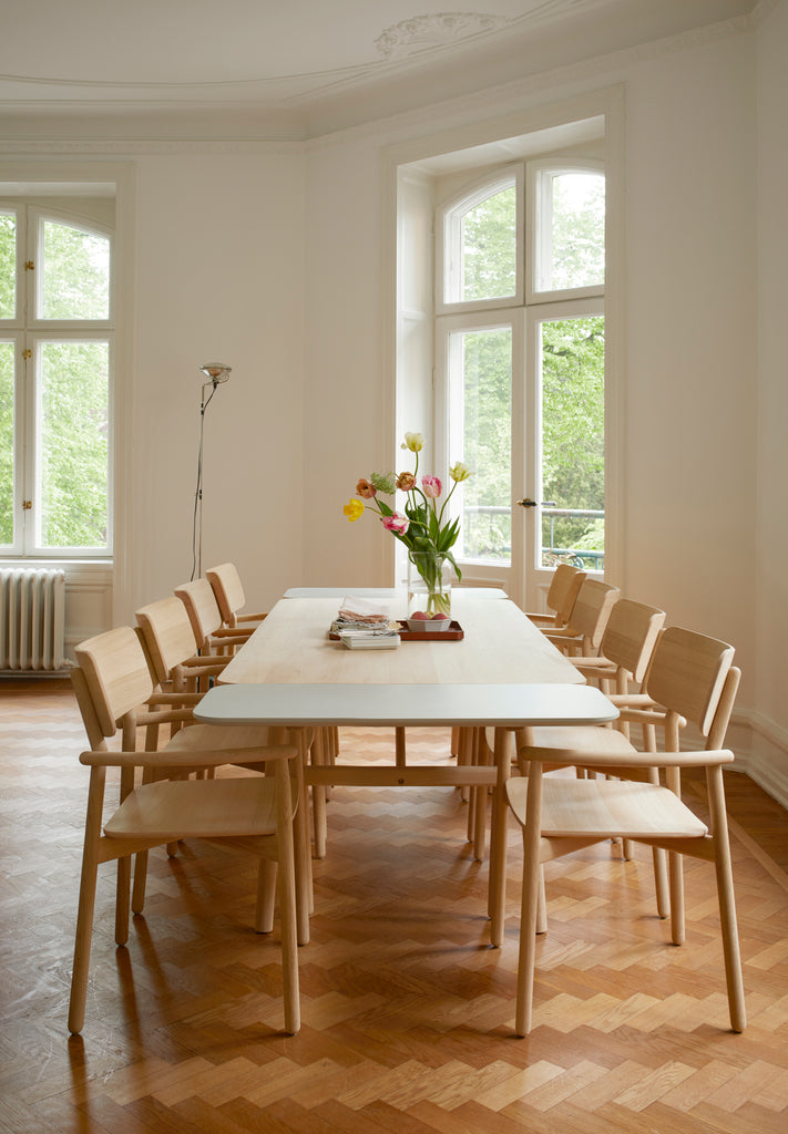 An embracing and comfortable armchair designed to support happy moments around the dining table. Hven Armchair carries a light expression highlighted by few subtle details such as the overlapping poles, round corners and curved shape.