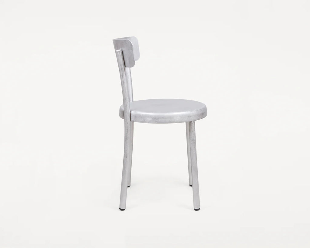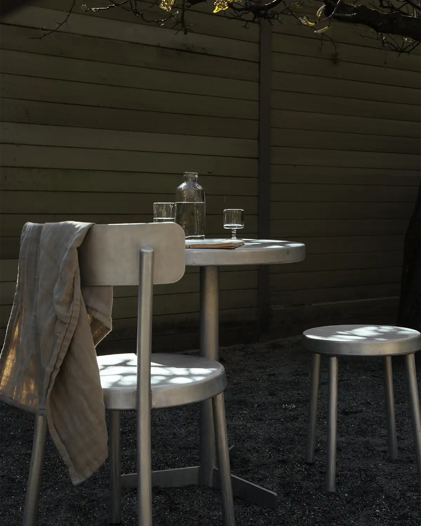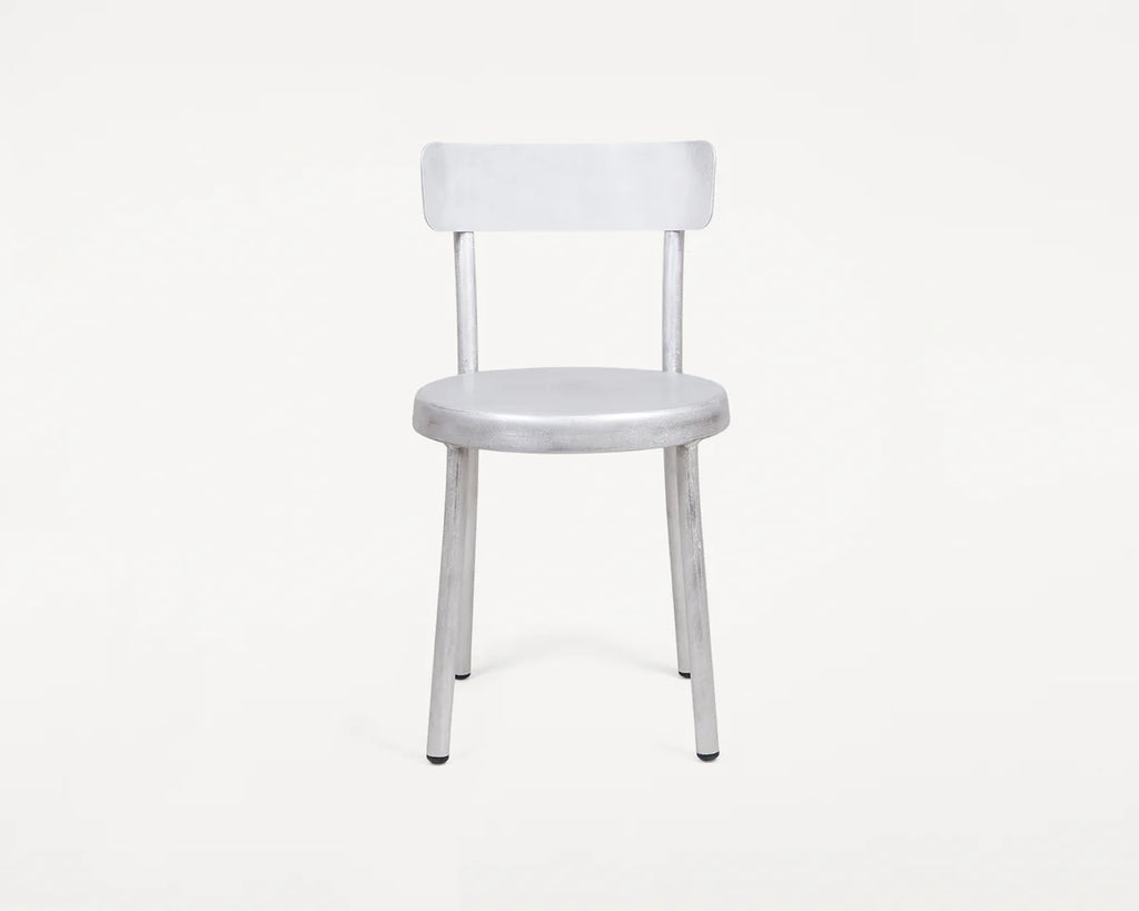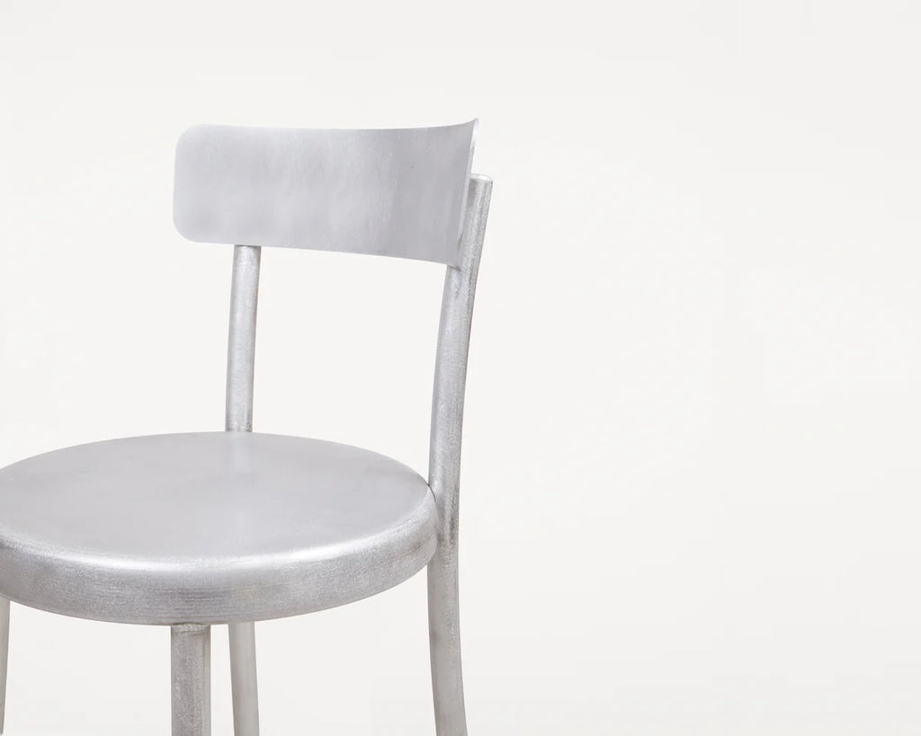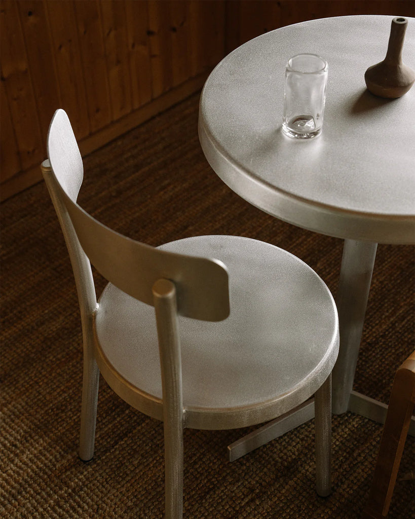 The Tasca Chair is designed in a lightweight, hand-brushed aluminum that generously blurs the lines between indoor and outdoor, home and away. An endlessly adaptable piece that offers a timeless, straightforward design for any setting—from a domestic interior to the patio of a frequented bistro.