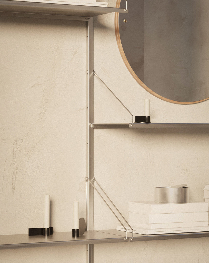 Shelf Library Stainless Steel is a natural extension of Frama’s Shelf Library universe. Characterized by a modular system and fastened with solid steel screws on stainless steel rails, the shelves can be easily placed and re-styled in a variety of ways. This versatile design lends itself to any space, creating a minimal backdrop for your good and objects.