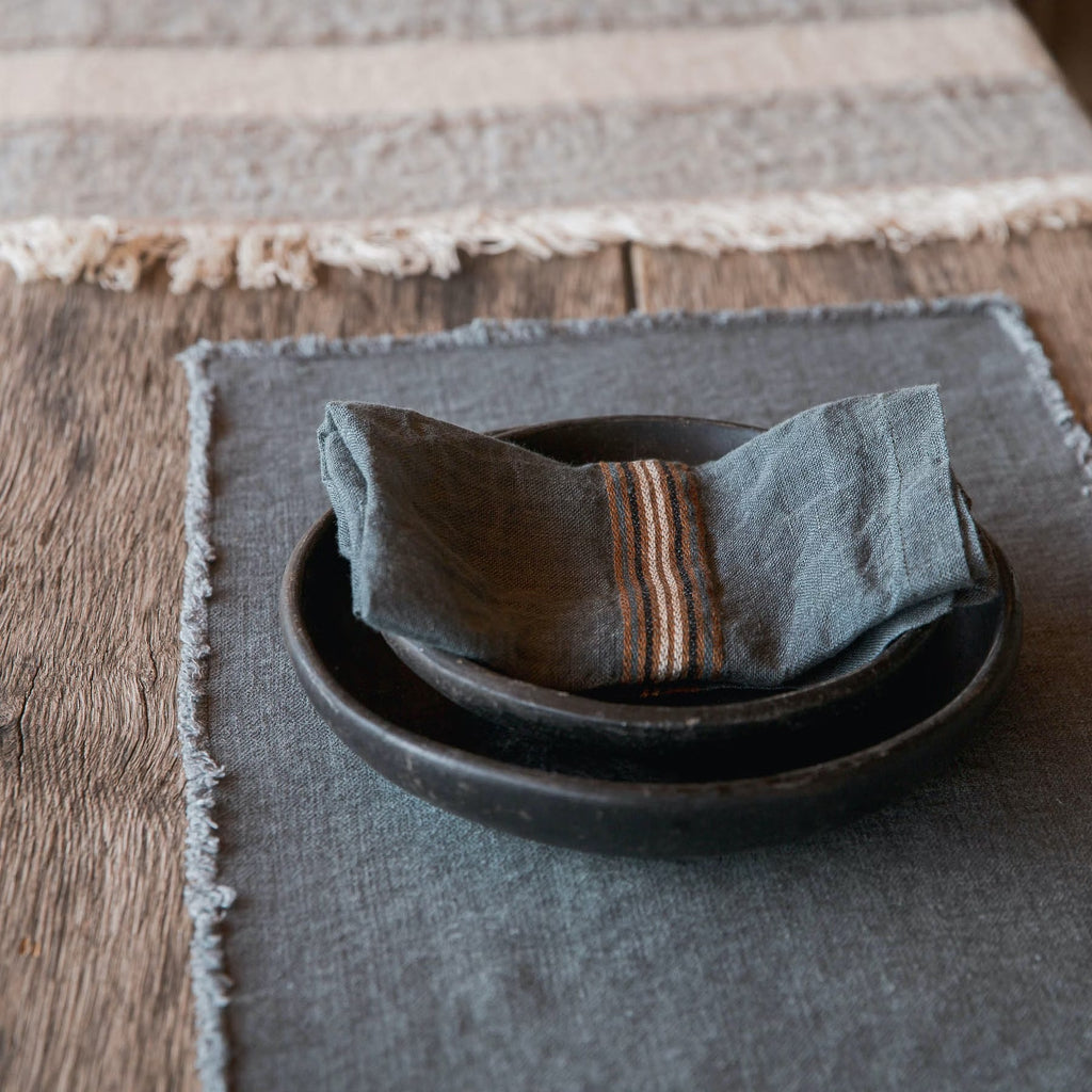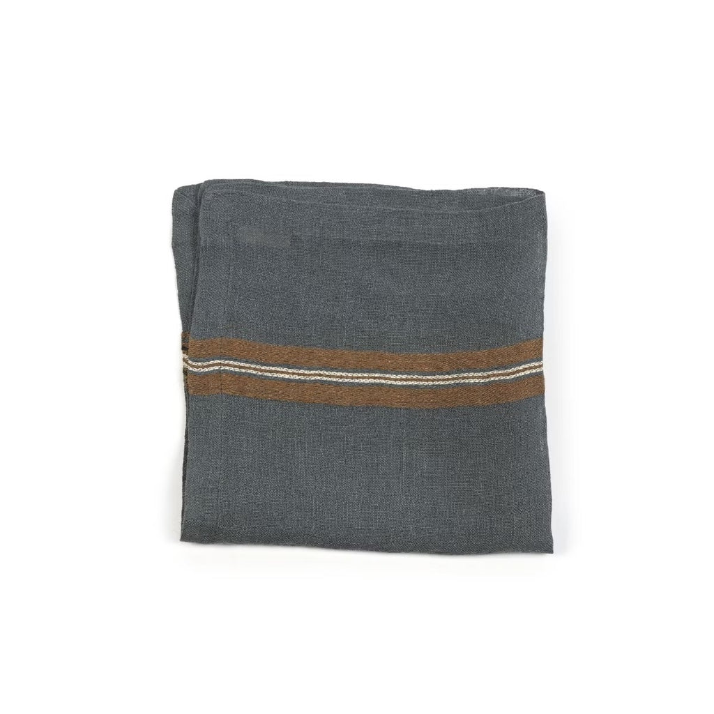 The Kea Napkin has two different stripes sitting on the river coloured ground.