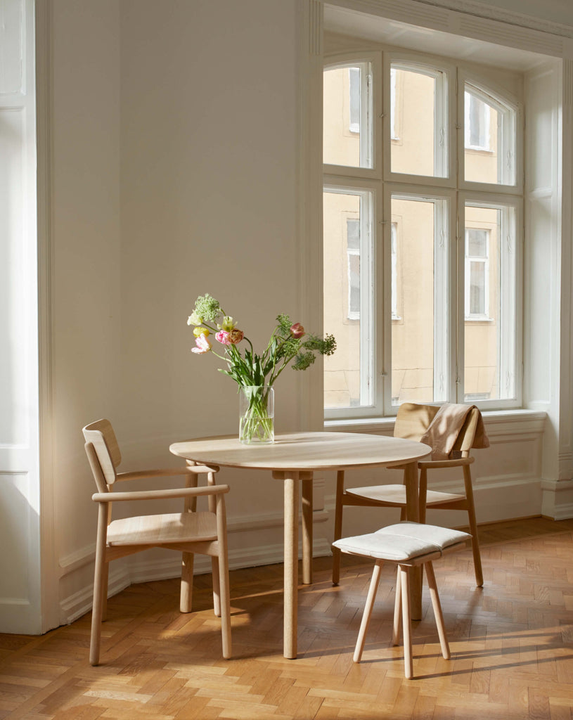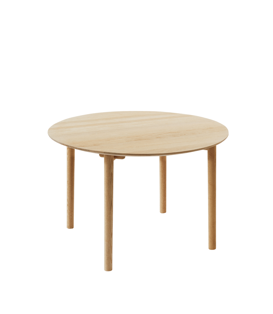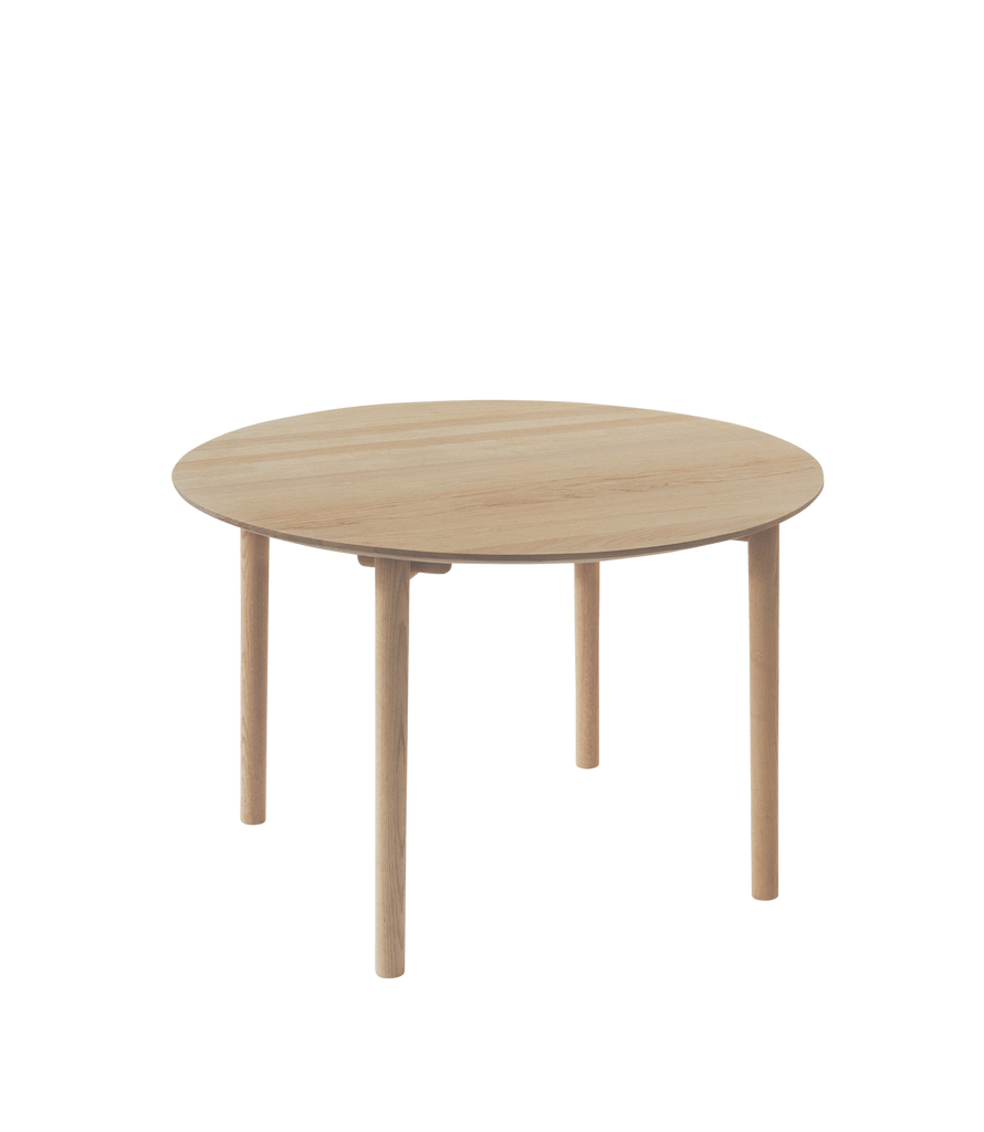 Hven is a collection of inviting and minimalist furniture with a natural Nordic look and feel. Designed in collaboration with contemporary Swedish designer, Anton Björsing, the minimalistic collection is easy to mix with other furniture. Hven Table is made from solid, FSC-certified oak with a stunning grain pattern and remarkable durability. A soft, minimalist design characterised by round legs and corners. Size Ø110 is perfect for smaller spaces or in the kitchen as the round shape visually takes up less space. Fits up to four people.