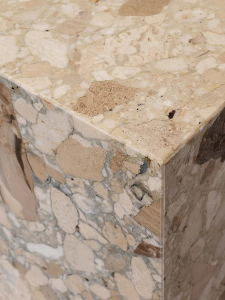 Equal parts beautiful and timeless, the Plinth Collection comprises multi-functional podiums for every space, as a standalone sculpture or platform to elevate objects. Profiling the beauty of natural materials and uncompromising craftsmanship, each is precision assembled to reveal the inherent beauty and uniqueness of the material. Perfectly symmetrical, the sharp, clean silhouette of the design stands in striking contrast to the unique veining and patterns of the textural Kunis Breccia stone and light-reflecting marble, offered in five unique varieties, used to create the design.