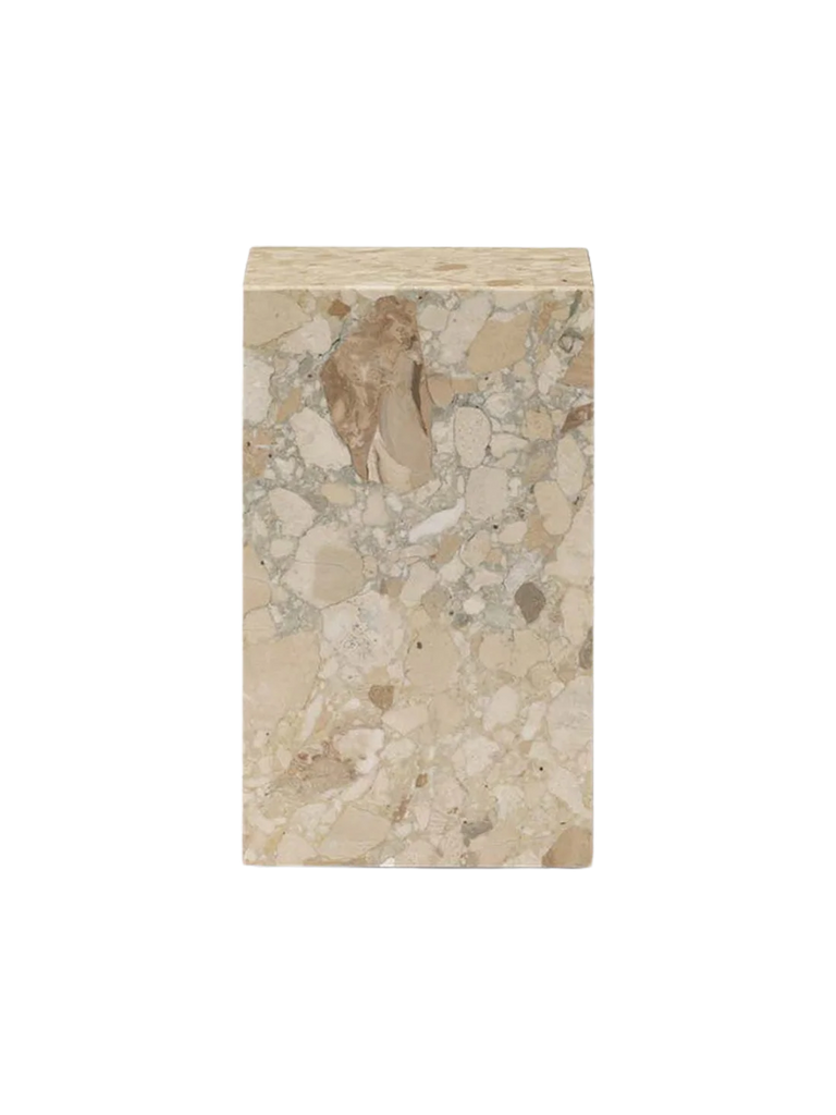 Equal parts beautiful and timeless, the Plinth Collection comprises multi-functional podiums for every space, as a standalone sculpture or platform to elevate objects. Profiling the beauty of natural materials and uncompromising craftsmanship, each is precision assembled to reveal the inherent beauty and uniqueness of the material. Perfectly symmetrical, the sharp, clean silhouette of the design stands in striking contrast to the unique veining and patterns of the textural Kunis Breccia stone and light-reflecting marble, offered in five unique varieties, used to create the design.