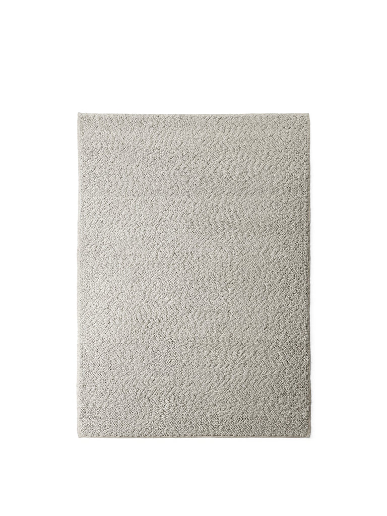 Looking to nature and its endless offerings, the Gravel Rug, designed by Nina Bruun for Audo CPH, represents the values that make a house a home: warm, welcoming and comfortable. Crafted with care from natural wool fibres, up close its soft loops – alternating in size – evoke the feeling of walking on a pebbled beach, but from far away the surface of the rug appears to ripple like a cornfield swaying with the wind. The tactile surface is achieved using a technique whereby tonal wool yarns of varying sizes are looped into tufts. The natural material softens the rug’s overall expression, which will work in any context, from private homes to public spaces.