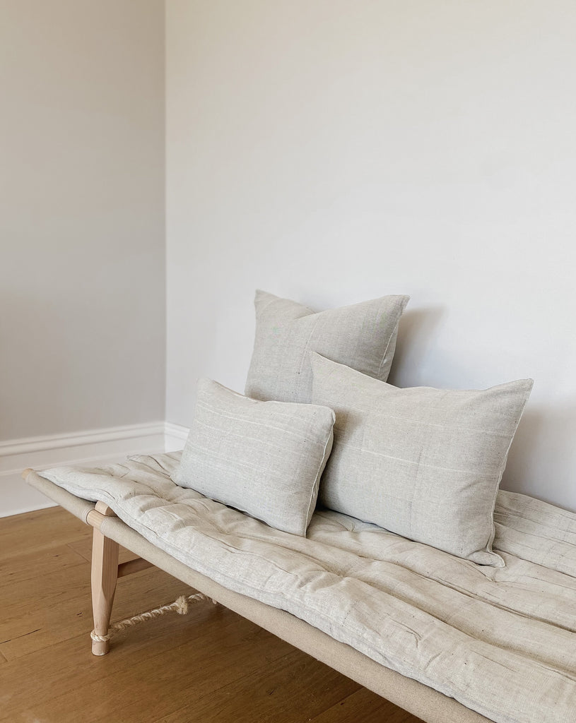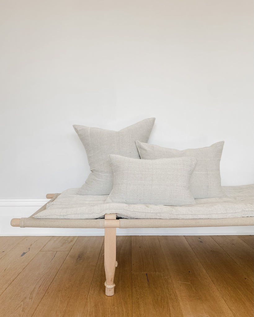 These timeless pure cotton cushions are entirely hand crafted in the Tensira workshop. They are hand-spun, hand-woven and hand-dyed using a traditional loom. The finish achieved through their traditional and unique methods is impossible to achieve with the use of machines and mass production. Tensira's cushions compliment each other beautifully and work seamlessly in combination with the Oski + Lottie unique cushion collection.